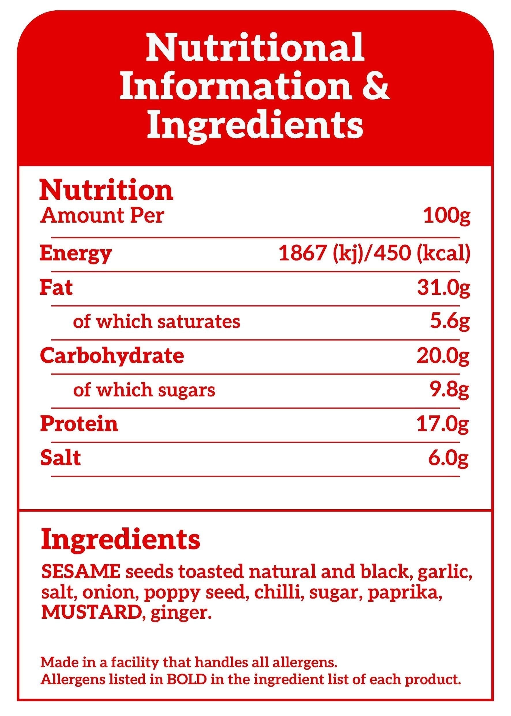 Our Bagelicious Korean Kick is a versatile savoury blend of toasted sesame seeds with garlic, onion, salt and blue poppy seeds sourced with care and blended in our own mini-factory with a Korean-style seasoning blend for using on Korean foods like Bibimbap, Kimchi fried eggs, Korean fried chicken, on popular asian foods like sushi, fried rice, ramen and stirfries or to add a crunchy Korean Kick to chips, fries, popcorn, soup, coleslaw, tofu and more
