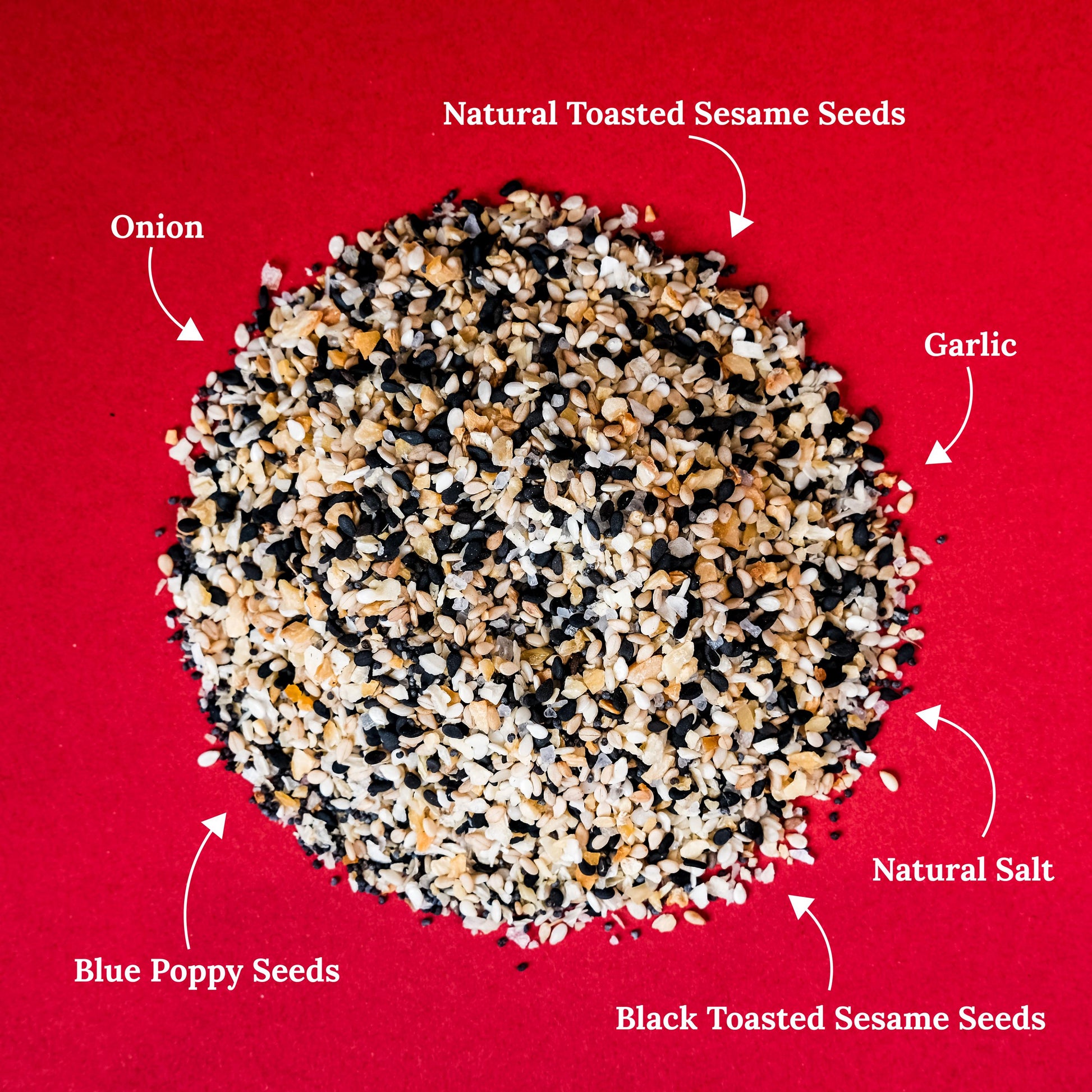 Listen up folks, first thing you gotta know is this seasoning should be called Everything But NOT The Bagel. For why? Born out of traditional bagel topping this you don't shakel over your bagel. No way never. EBTB is a majorly savoury and crunchy blend of toasted seeds, garlic, onion, salt and poppy seeds that adds a whole new dimension to a load of other everyday kind of food you eat, like, often.