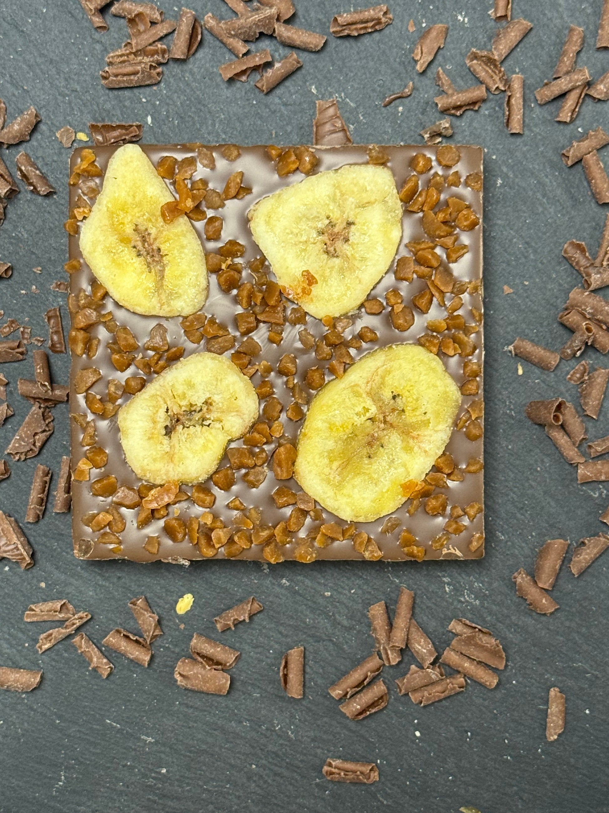 Meet the beloved classic that keeps fans coming back—our Banana & Toffee Mini Bloc. Creamy milk chocolate gets the star treatment with crunchy banana slices, shards of luscious toffee for an elevated sensory experience. It's nostalgic comfort meets sophisticated indulgence, with every bite delivering a delightful contrast of textures and flavours. Sweet, satisfying, and utterly crave-worthy—this is chocolate that celebrates the simple pleasures done brilliantly.