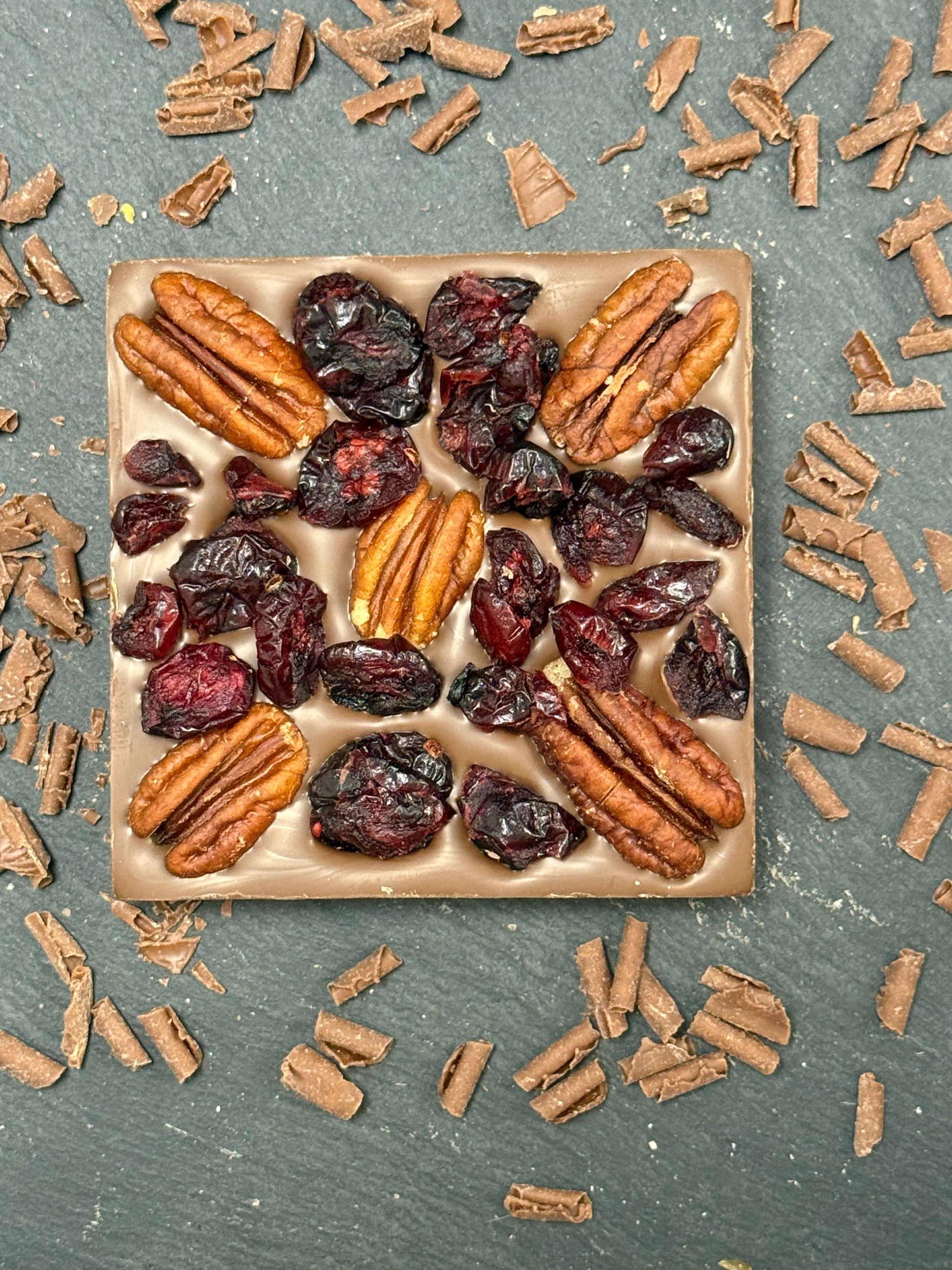 Discover a delightful trio of flavours in our Cranberry & Pecan Mini Bloc. Tart cranberries and buttery pecans mingle with our signature milk chocolate for a sophisticated snack that's anything but ordinary. The perfect balance of fruity brightness and nutty warmth wrapped in smooth chocolate.