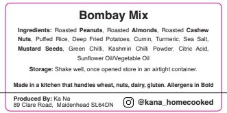 Our favourite snack. Ka Na Bombay Mix includes a tantalizing blend of spices, slow roasted crunchy nuts, puffed rice and fried potato, creating the perfect combination of texture and flavour. This savoury snack is the ideal accompaniment to a cold beer or a hot cup of masala chai. Whether you're hosting a party or simply snacking at home, our Bombay Mix is sure to be a crowd-pleaser. Order a bag today and experience the authentic taste of India in every bite.