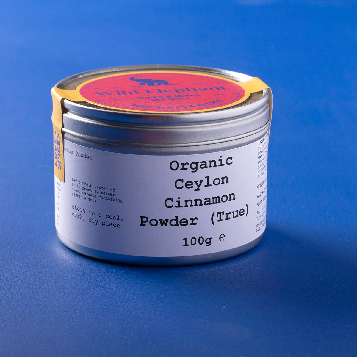 Our Wild Elephant Organic Ceylon Cinnamon is called True because of the fact that this variety is the true original cinnamon, native to Sri Lanka (formerly known as Ceylon).Ceylon cinnamon has a lighter colour, more delicate taste and a more flavourful aroma. It is also more difficult to find and more expensive than the more common Cassia variety.