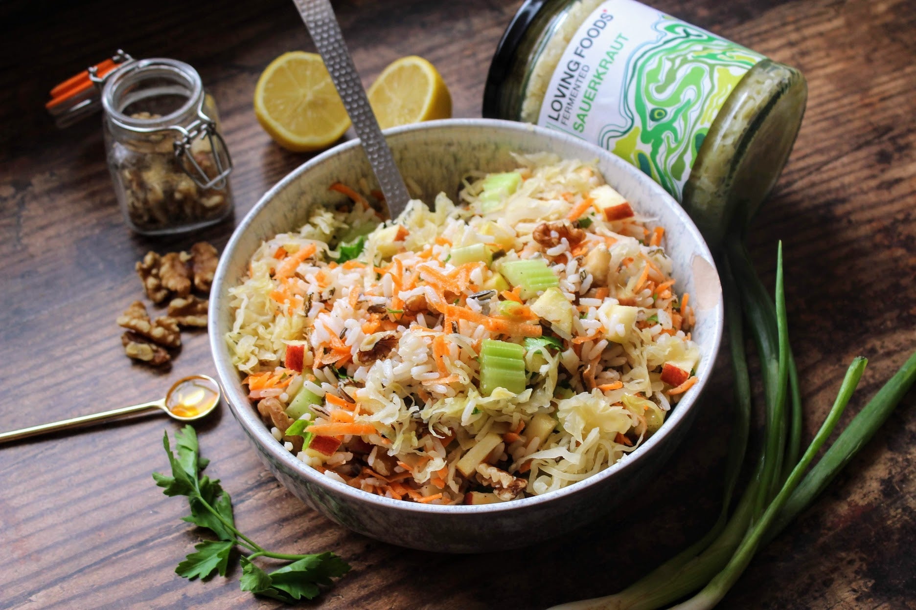 Just cabbage and Celtic sea salt - that’s it. You also need time. The result is super tasty and offers vitamins C and K, potassium, calcium and phosphorus. And it’s great in salad, with a sausage, even in a smoothie. Try not to cook it, just add it.