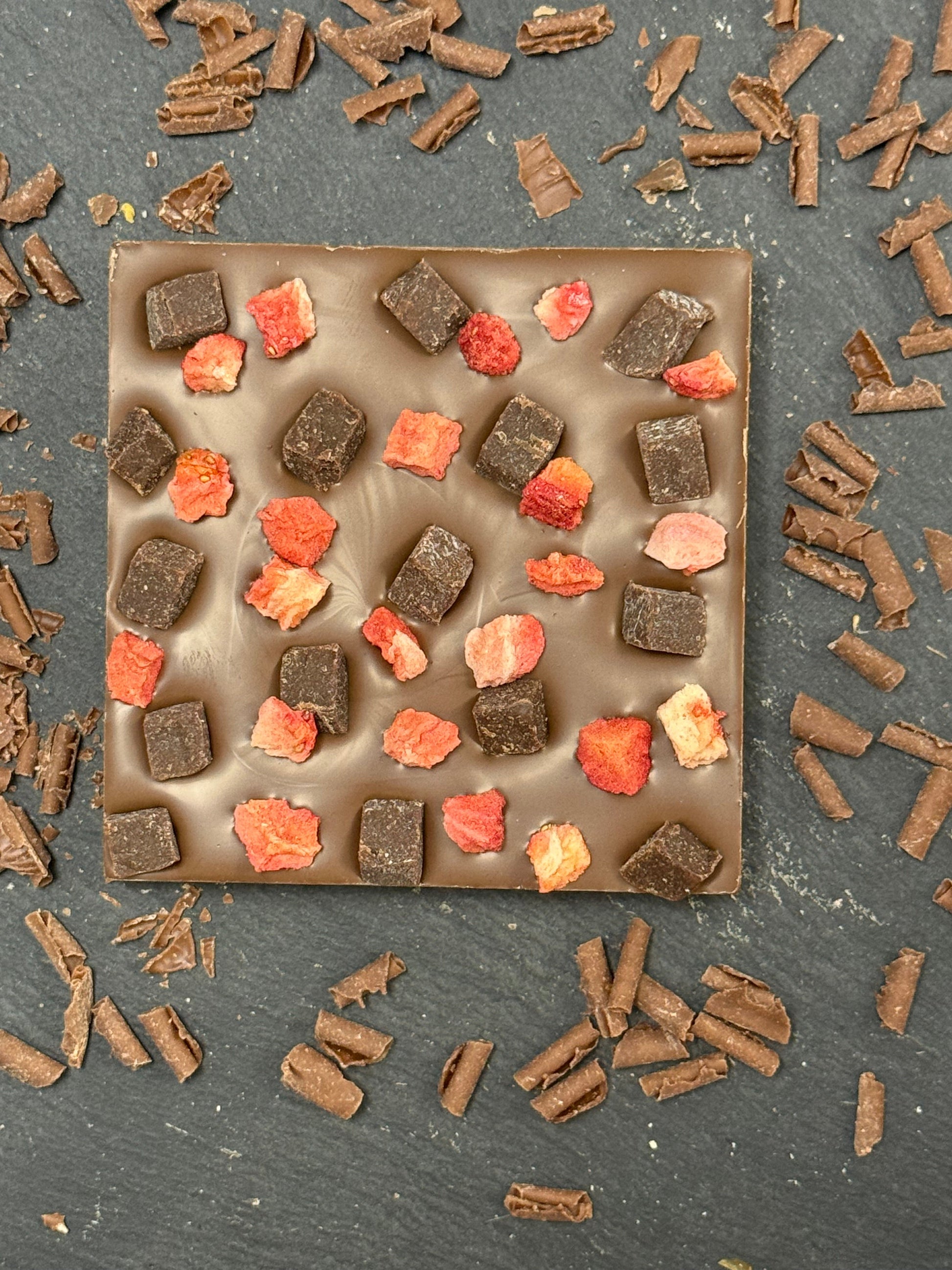 The ultimate trio arrives in our Strawberry Fudge Brownie Mini Bloc. We took the timeless romance of chocolate and strawberries, then threw in decadent chocolate fudge brownie chunks because why choose? Fruity sweetness dances with rich chocolate indulgence in every bite, creating a flavour combination that's equal parts elegant and utterly irresistible. It's the dessert lover's dream wrapped up in one glorious chocolate package—proof that the best things really do come in threes.