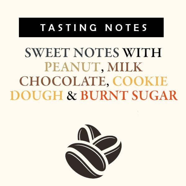 Decaf without the chemicals. Smooth, mild and sweet with good notes of roasted peanut, soft milk chocolate and cookie dough. Medium-bodied with mild acidity and slight burnt sugar sweetness.