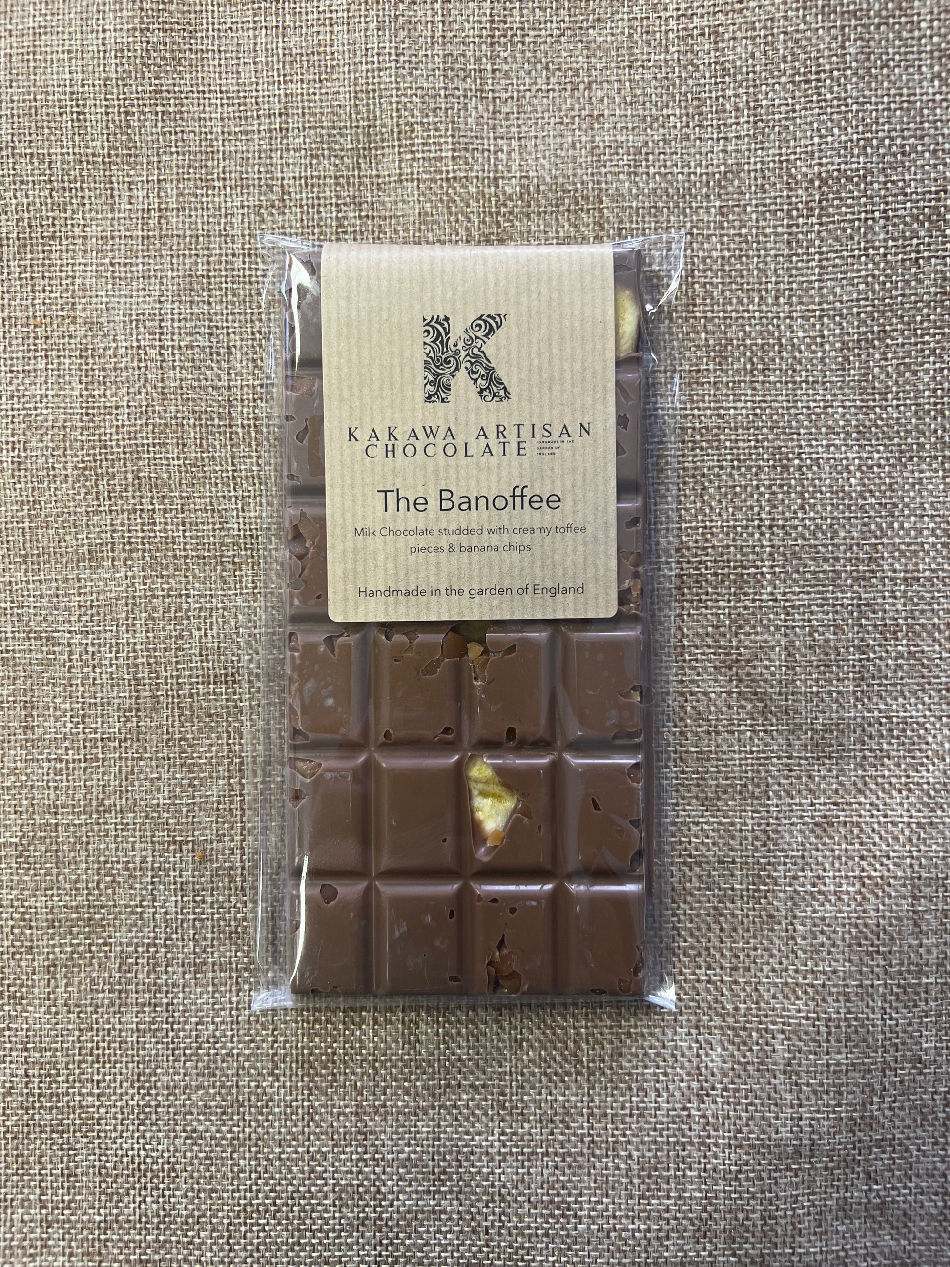 Indulge in this dessert inspired chocolate treat, made with smooth milk chocolate, studded with banana chips and the creamiest golden toffee pieces.