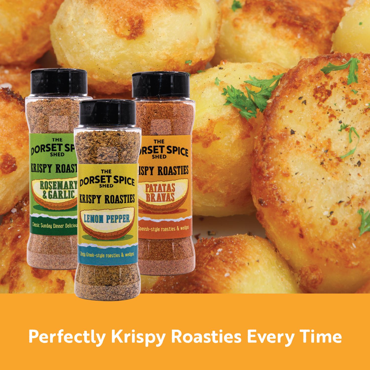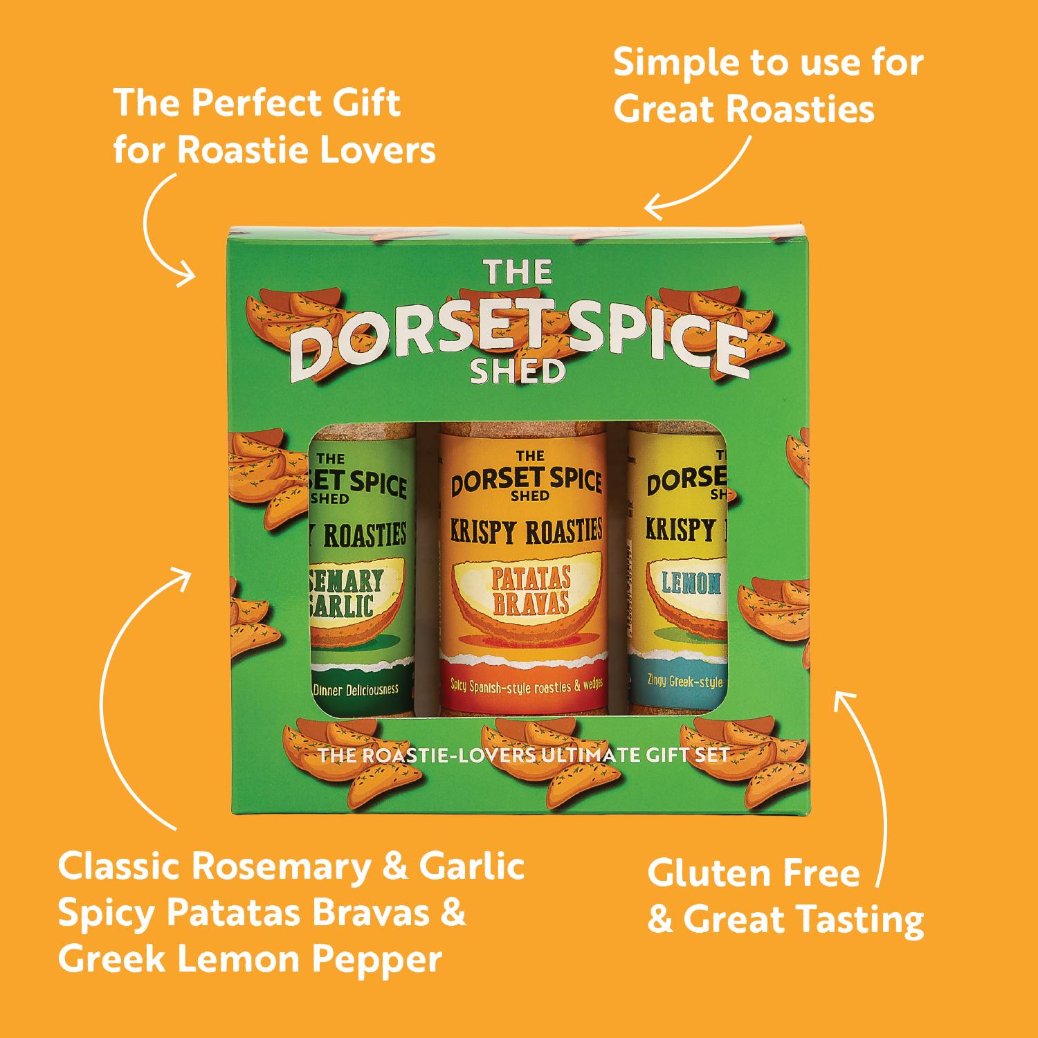 The Dorset Spice Shed - Krispy Roasties Roast Potato Seasoning Gift Pack - Perfect Gift for Roastie Lovers - Three Fantastic Flavours